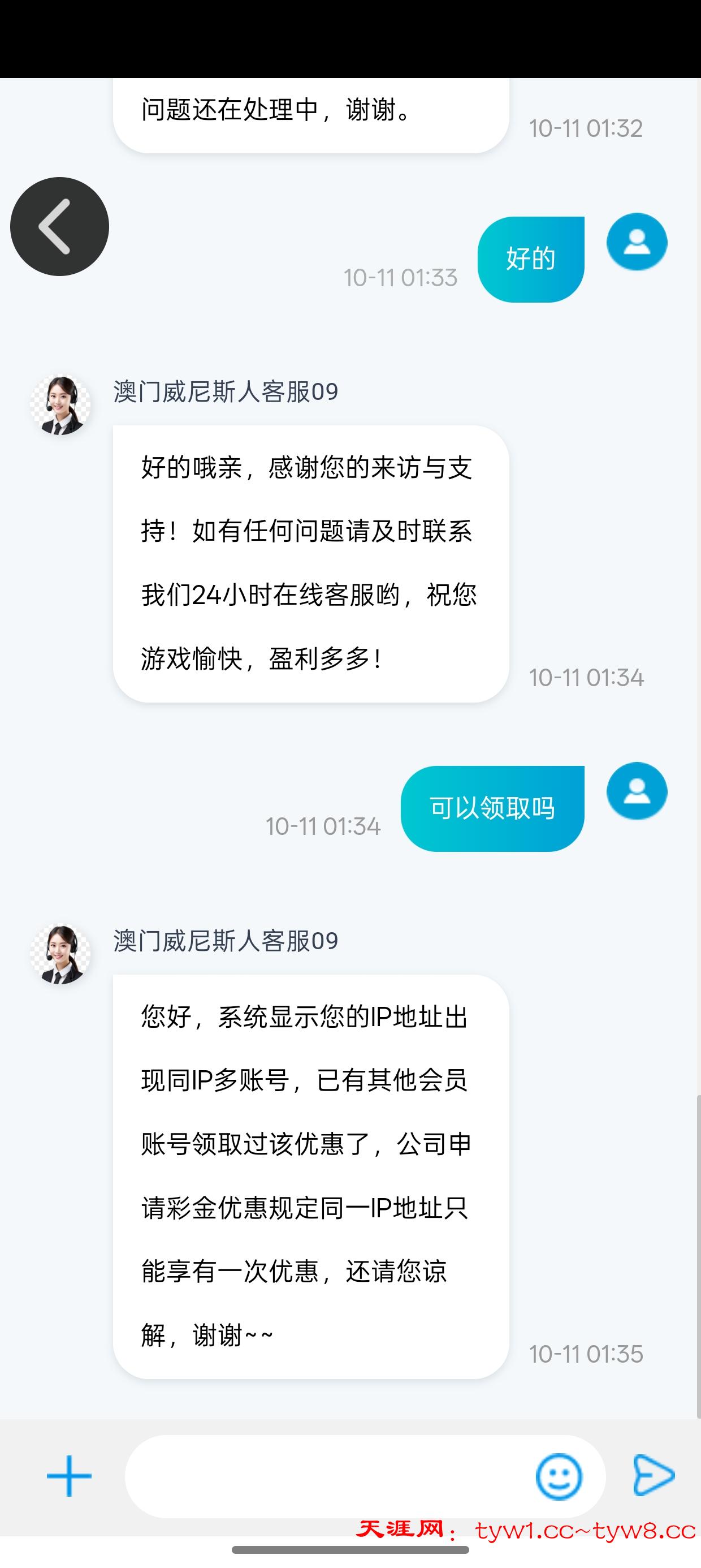 您好,系统显示您的IP地址出现同IP多账号,已有其他会员账号领取过该优惠了,公司申请彩金优惠规定同一IP地址只能享有一次优惠,还请您谅解,谢谢。