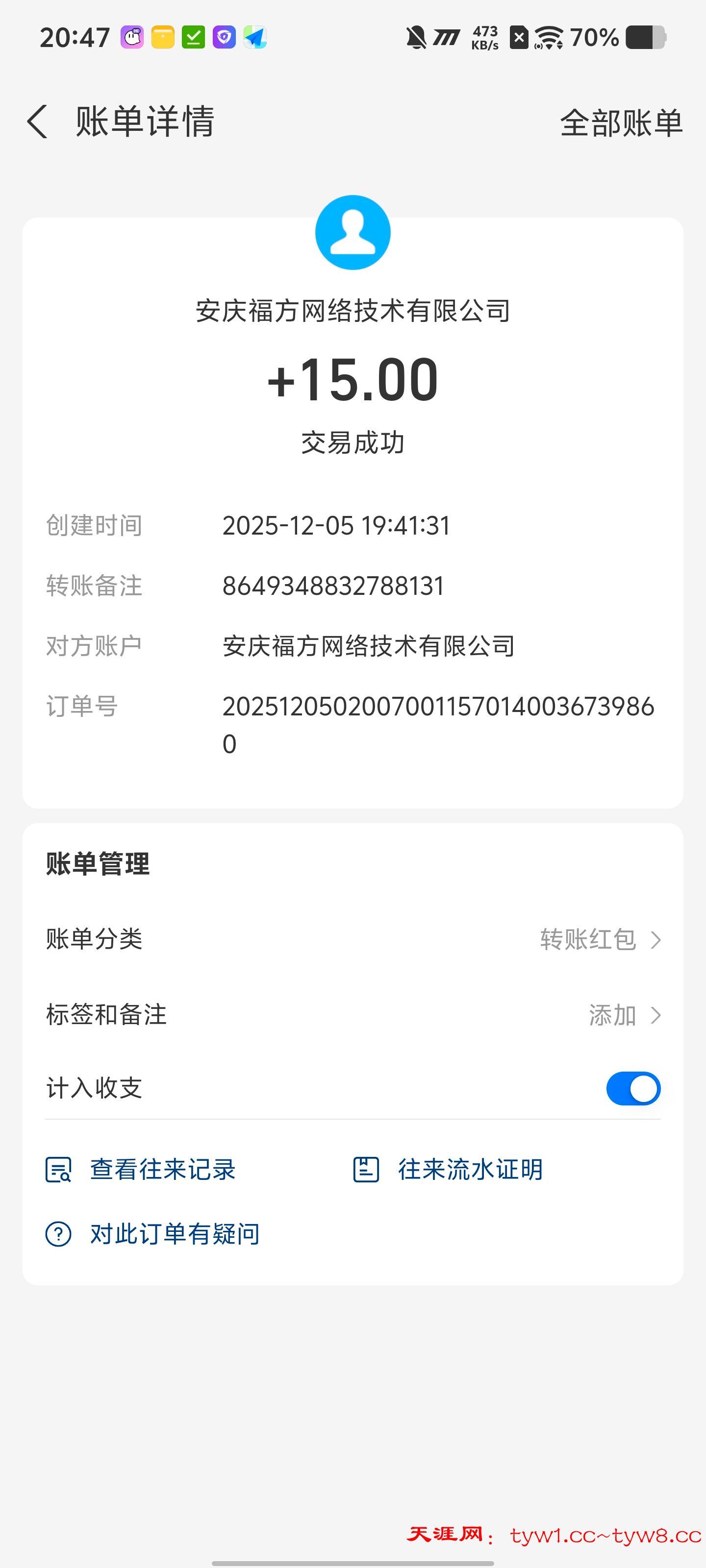 到账15感谢天涯