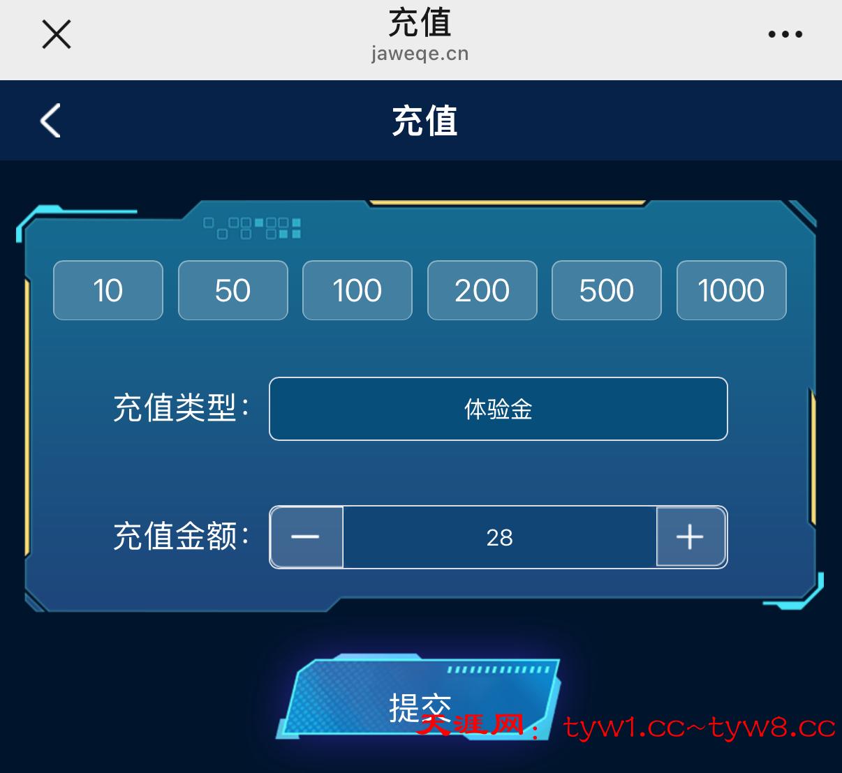 微信扫码注册登录,点击充值里体验金提交送28