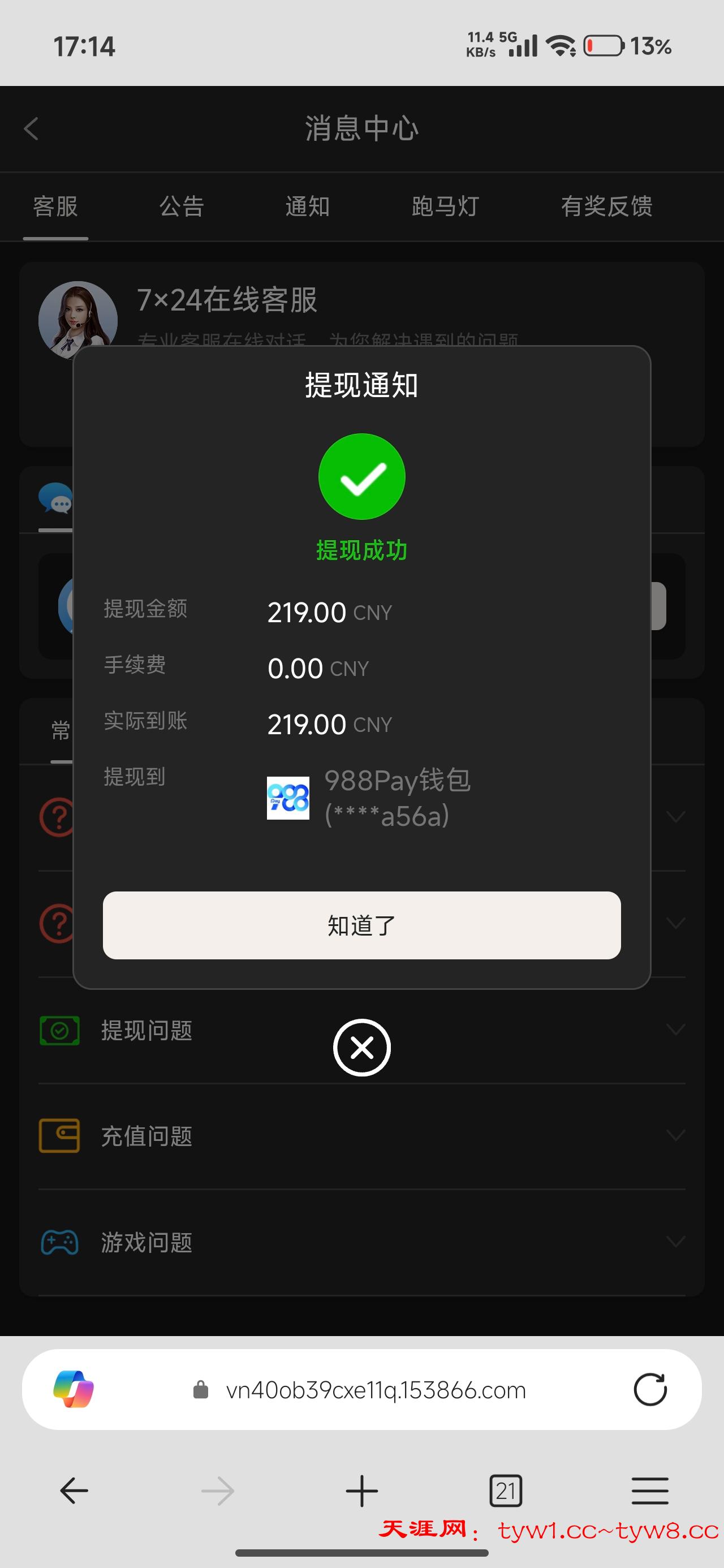 到账比较慢,差不多一个小时