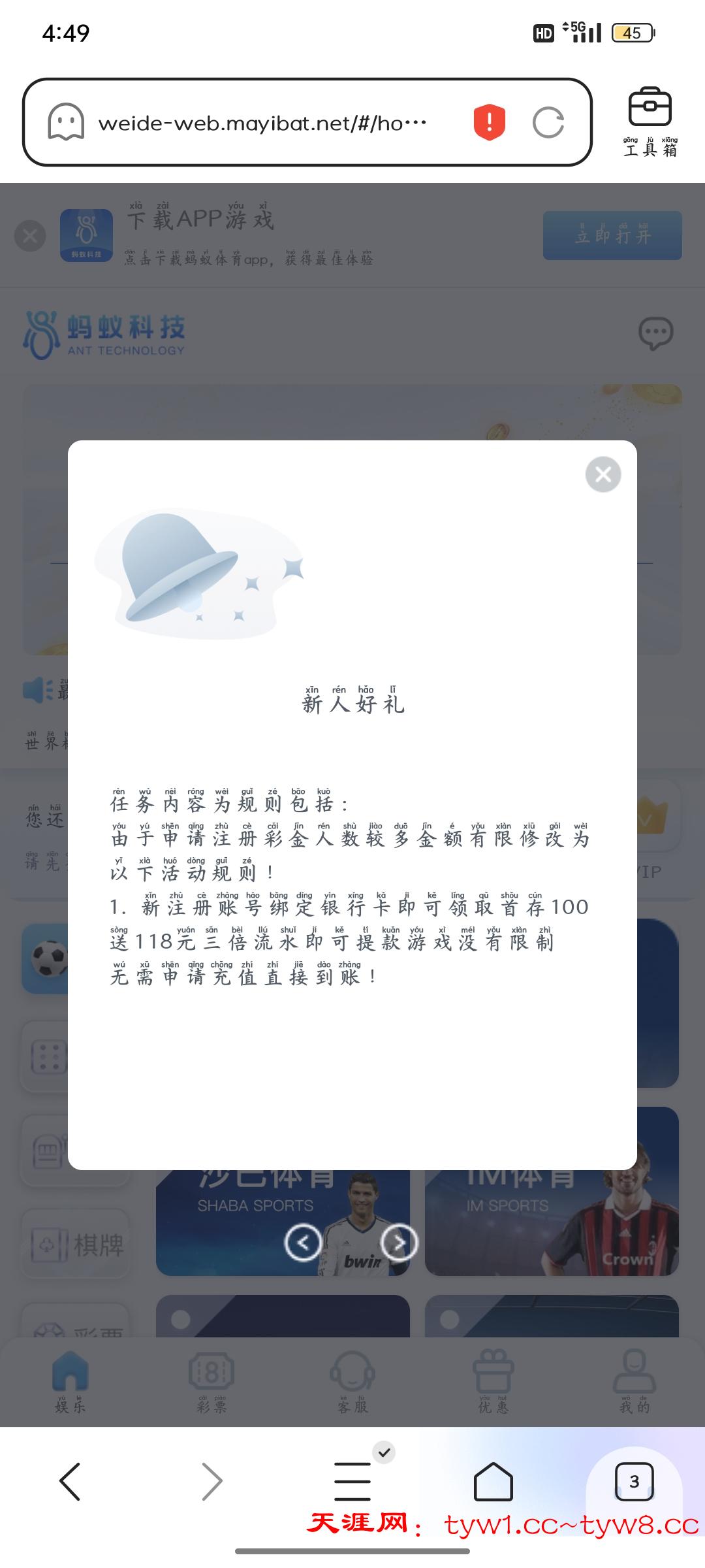 有个蛋新人好礼任务内容为规则包括: 由于申请注册彩金人数较多金额有限修改为以下活动规则! 1. 新注册账号绑定银行卡即可领取首存100送118元三倍流水即可提款游戏没有限制 无需申请充值直接到账!