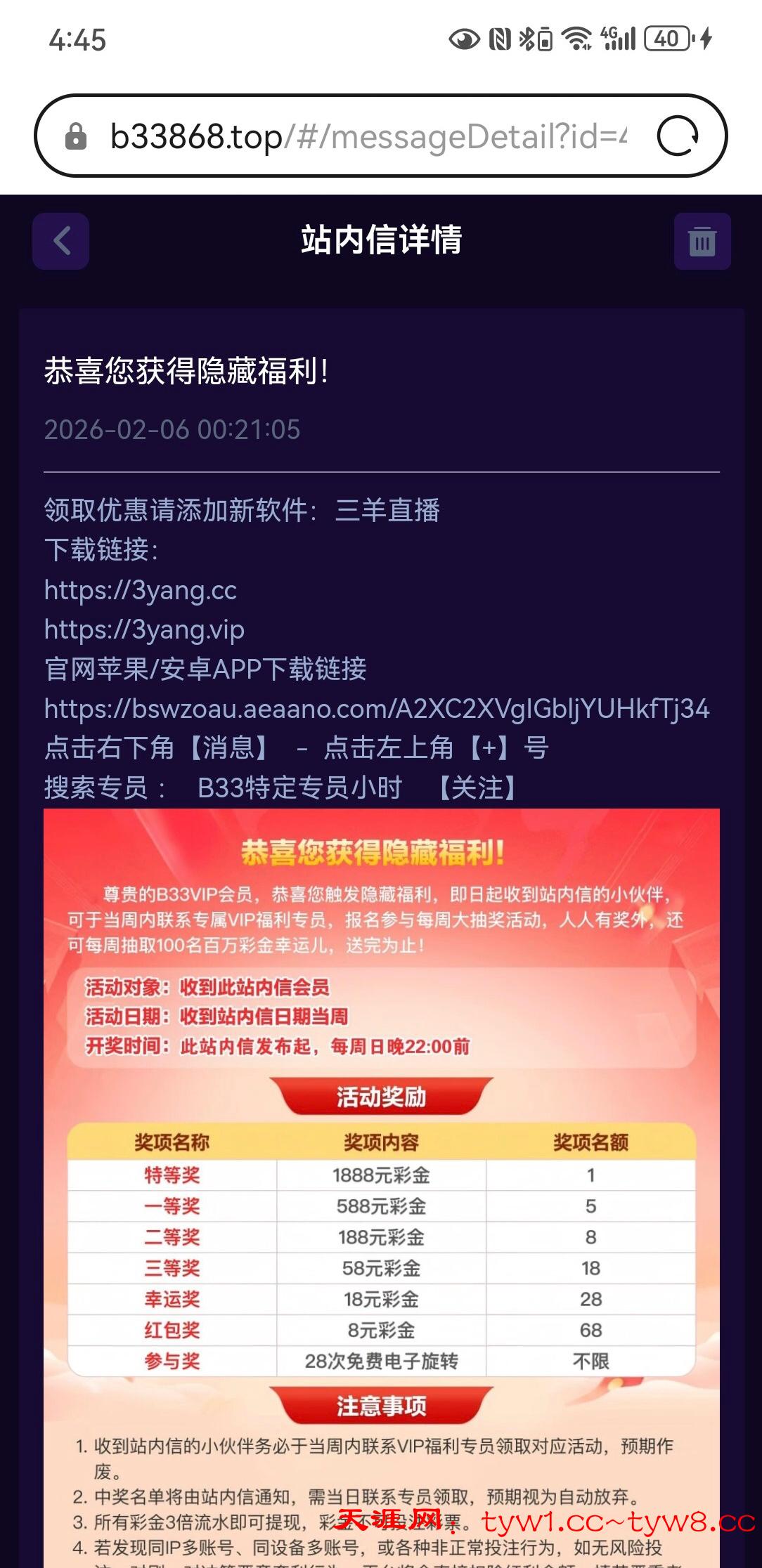 【b33】—✅—站内信彩金
