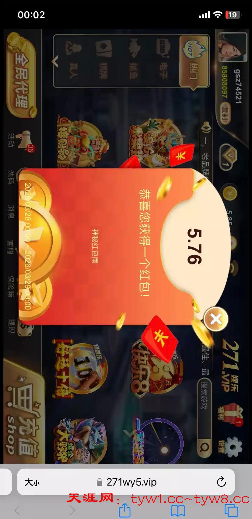 【271棋牌-红包雨弹窗】