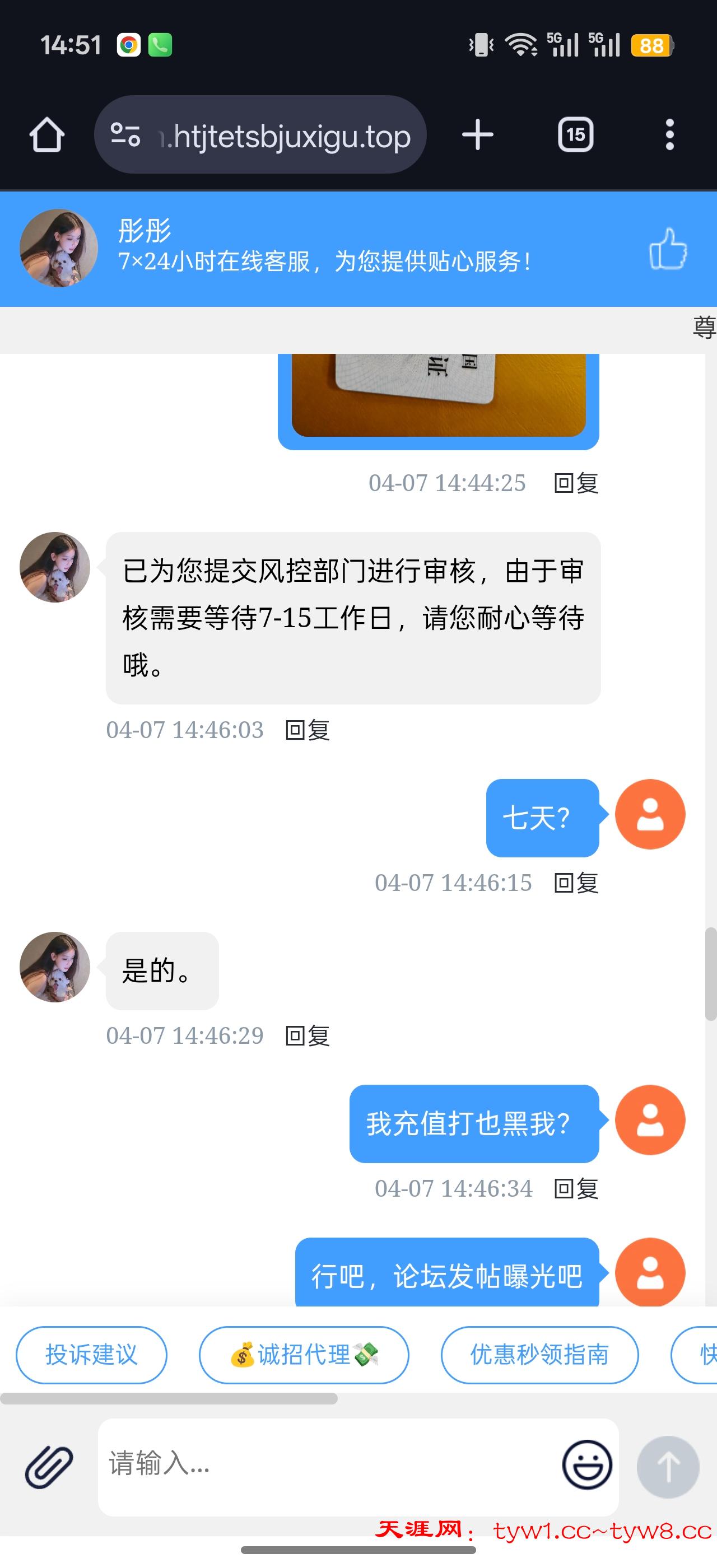 这傻逼台去年就给我黑了 说是7-15天 不用等了 无限审核