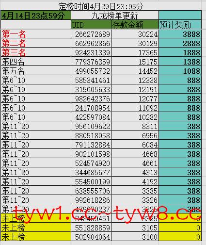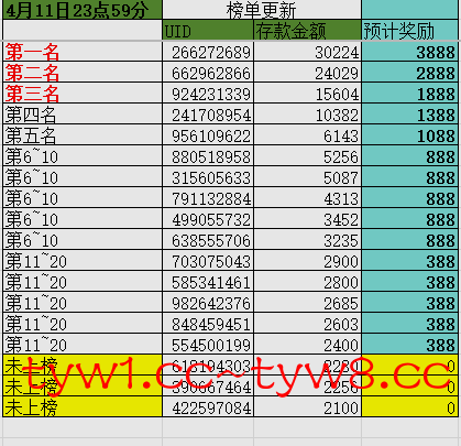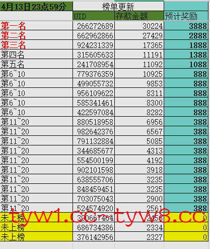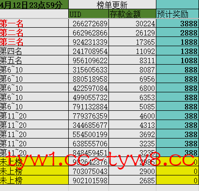 (定榜时间4月19日23点59分)只计算2000以上充值用户