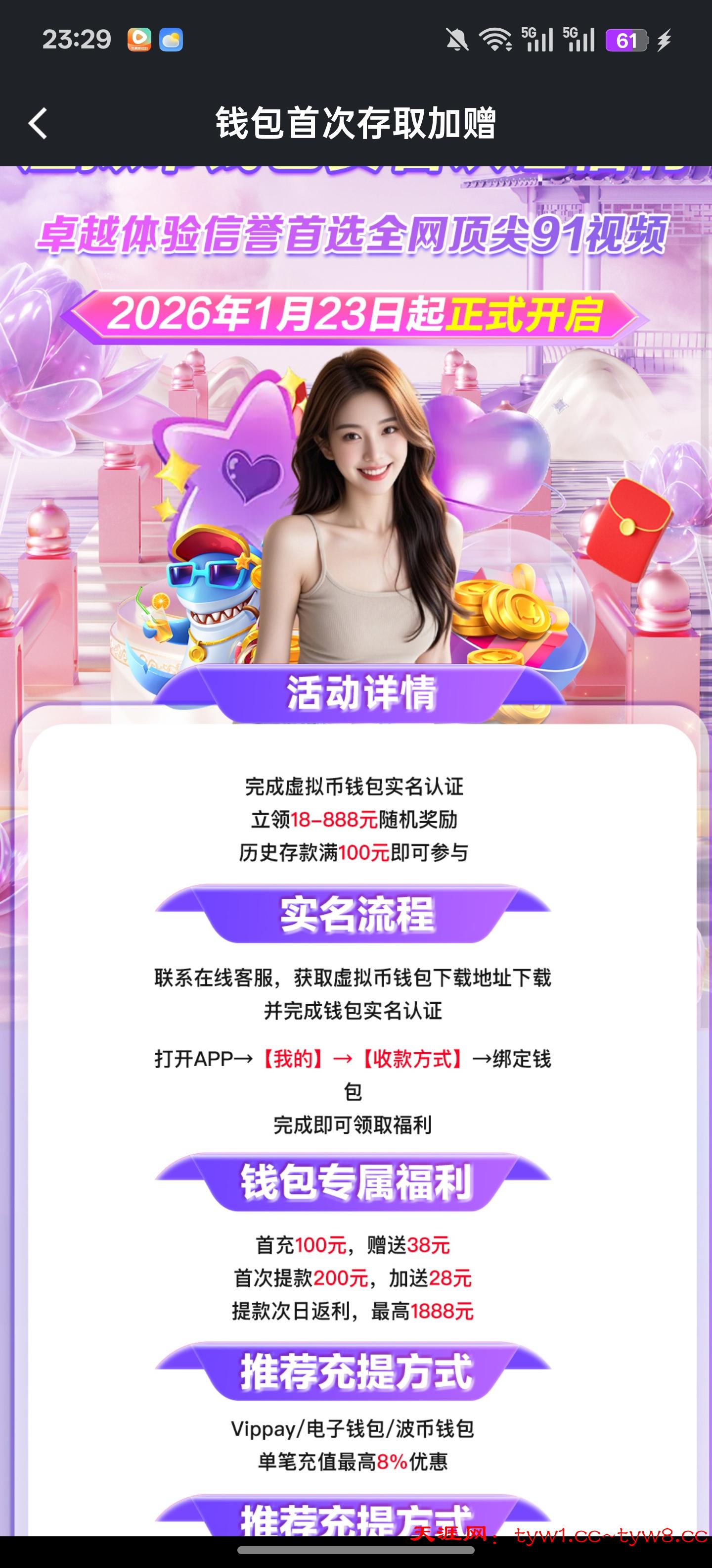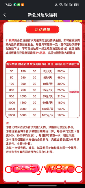 91视频钱包充值100第一天送71 后续一个月每天送10