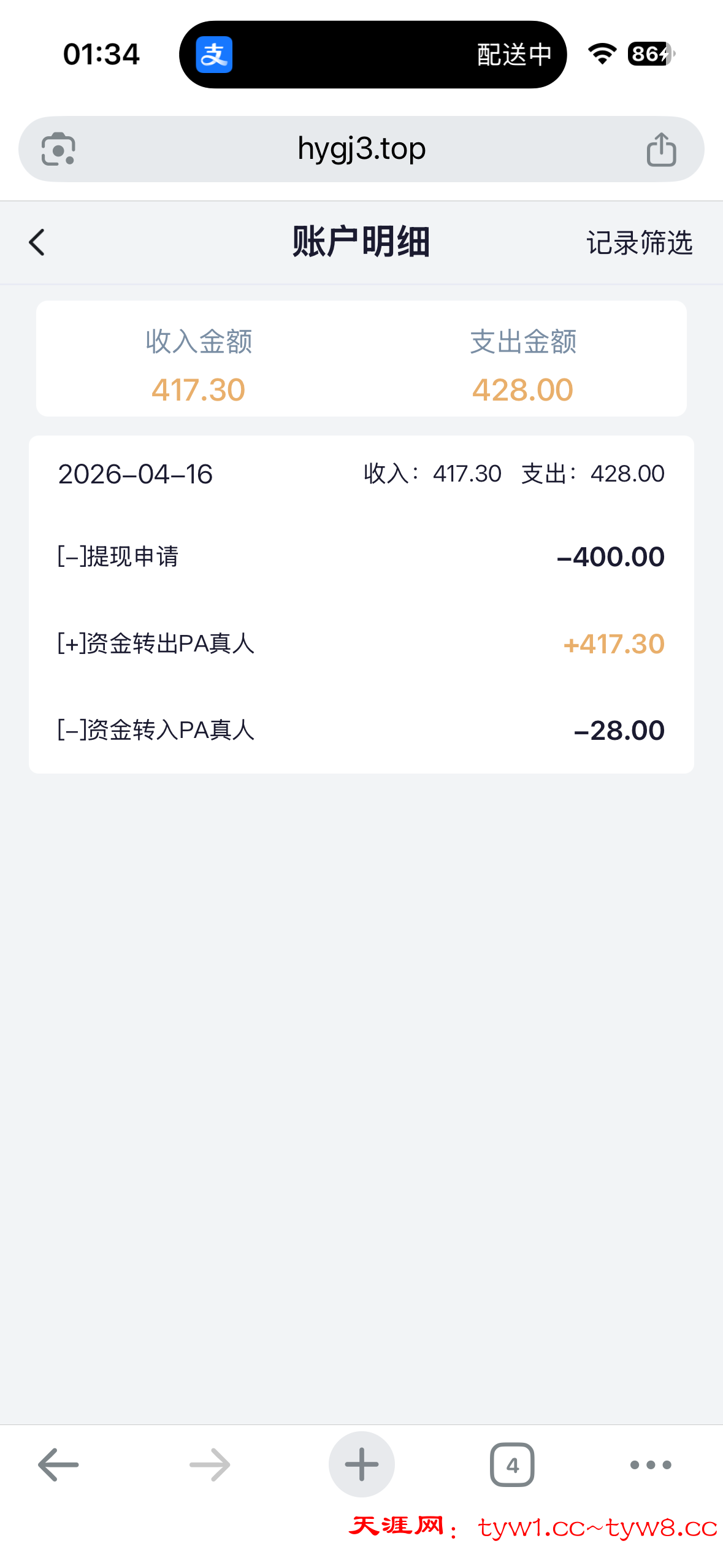 到账100
