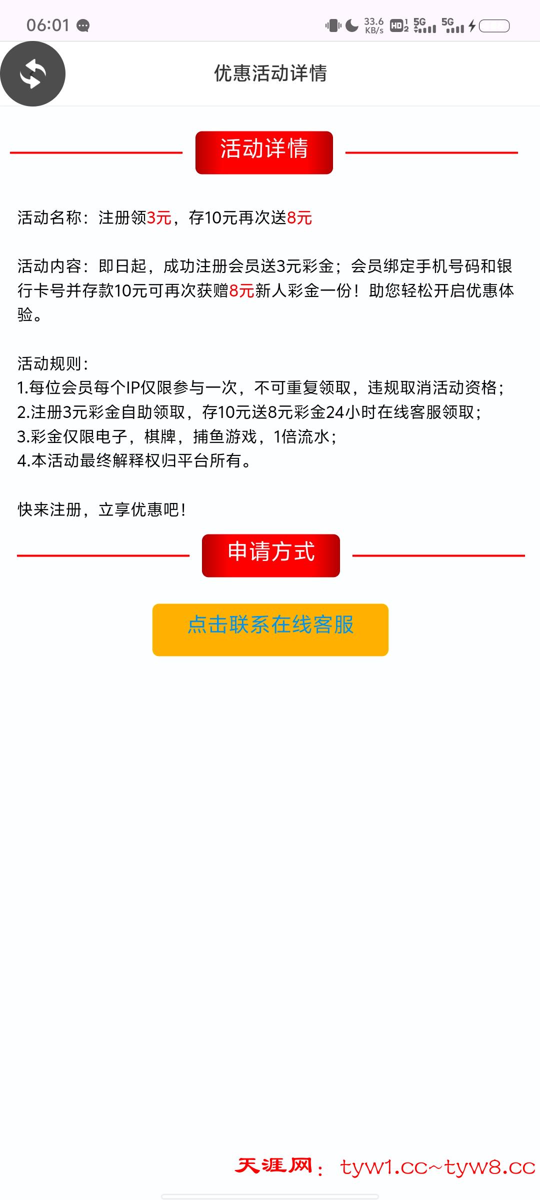 注册送3彩金,绑手机号银行卡存款10再送8,找客服申请,跟以小博大差不多一个性质