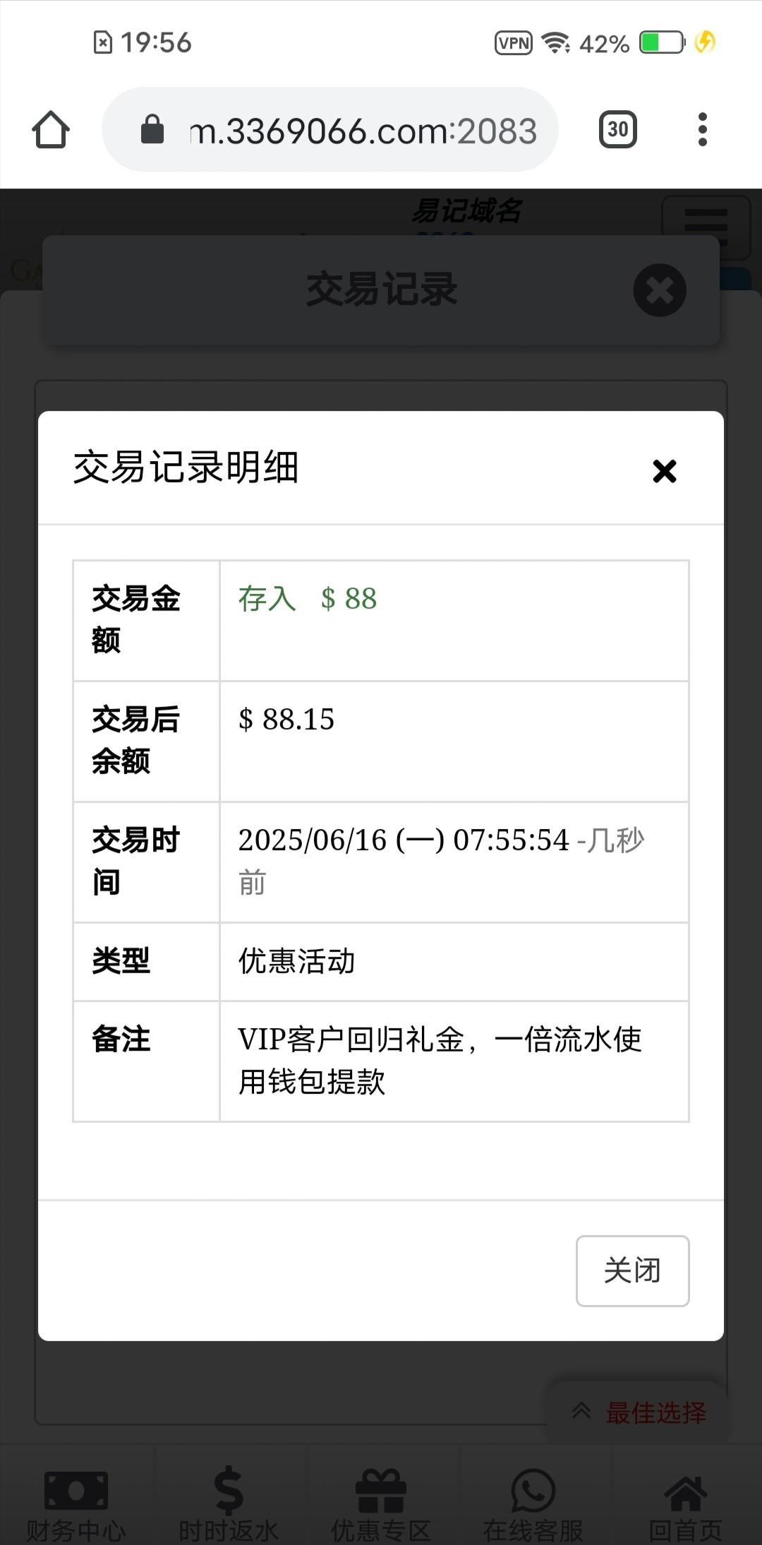 3369不知道为啥给了个彩金 一两年没充值过了,之前给了个188,这次无聊登录又给了88,有号的自己去登录看看 网站3369.com