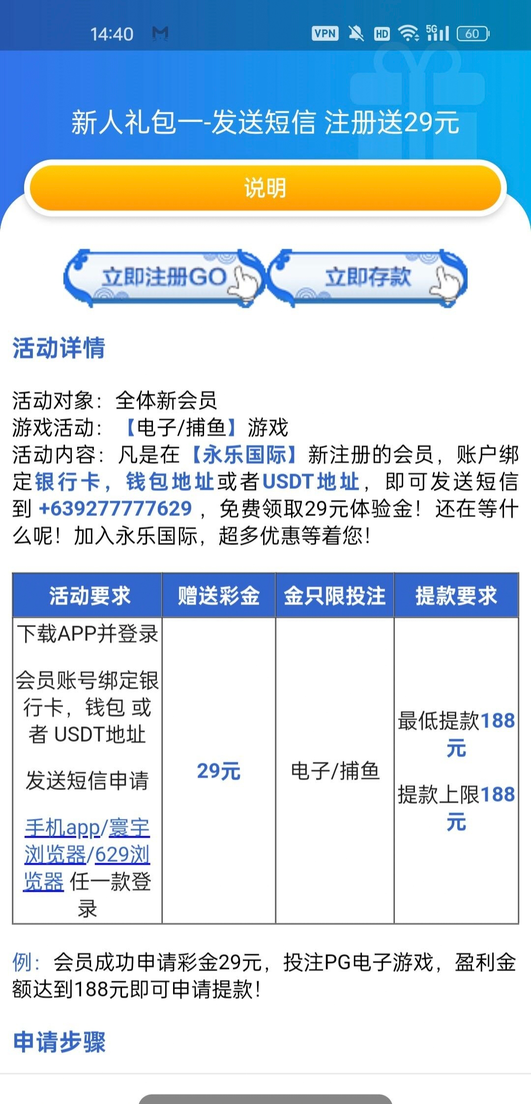 注册下载app并绑定钱包发送短信领29,过10分钟没到账的去找客服领,网址629.com